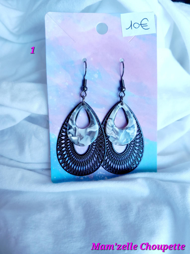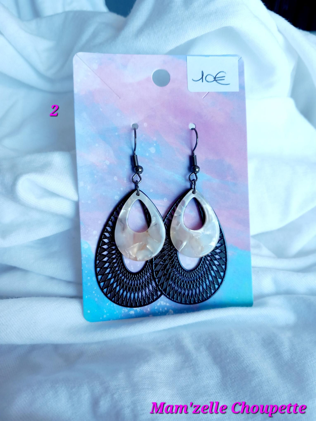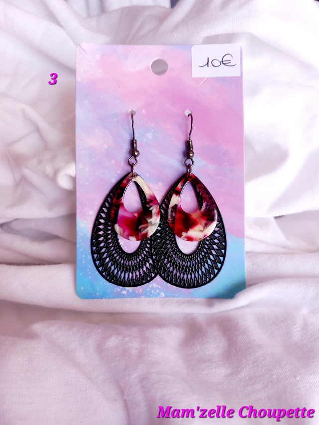 Boucles d'oreilles en acier inoxydable, estampes gouttes en métal noir et gouttes en résine (3 coloris au choix)